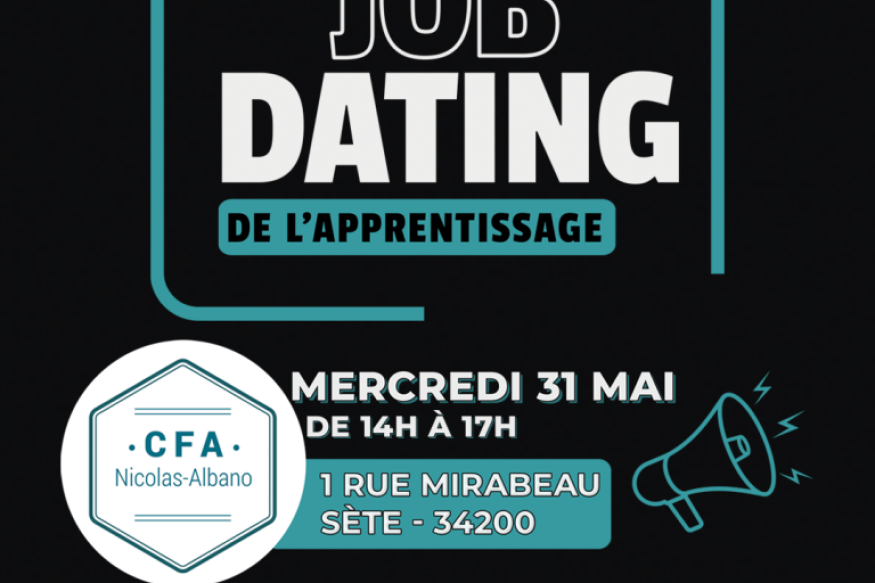 Le mercredi 31 mai de 14h à 17h le CFA organise un Jobdating ouvert à toutes et tous avec sur place une quarantaine d’entreprises et une centaine d’offres de postes en apprentissage