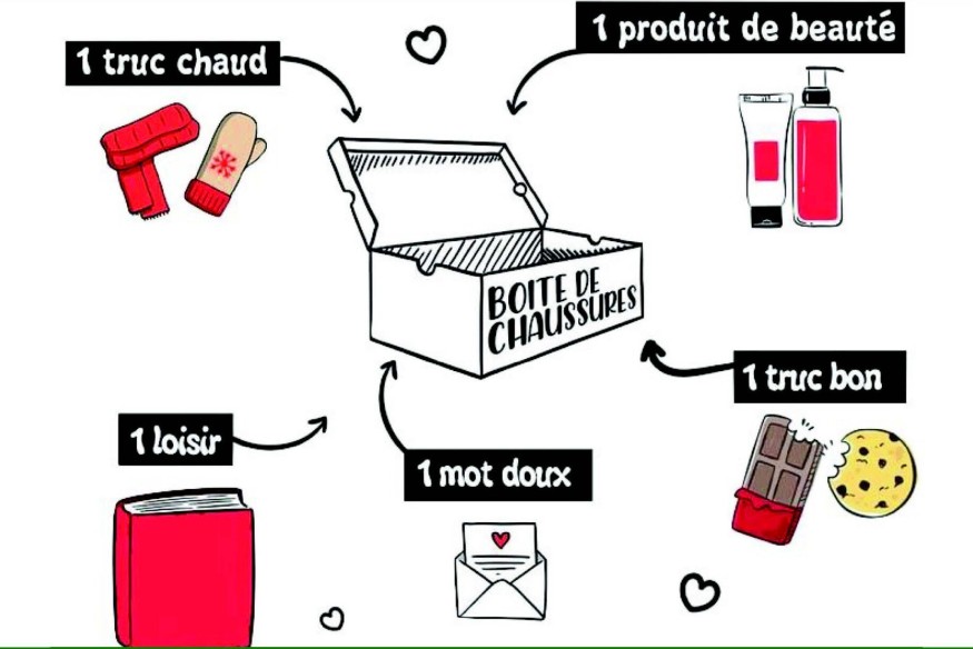 L'idée sera d'offrir aux personnes isolées et en très grande précarité une boîte à chaussures, emballée comme un cadeau, et remplie de douceurs pour Noël.