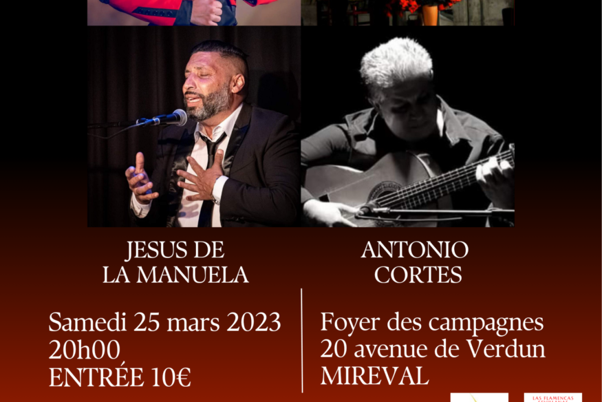 Samedi 25 mars à 20h00 au Foyer des Campagnes de Mireval, un TABLAO FLAMENCO (SPECTACLE DE FLAMENCO) avec à l'affiche nos deux professeurs de danse, Céline Daussan et Alexis Laurens accompagnés de Jésus de la Manuela au chant et Antonio Cortés à la guitare.10€ l'entrée ?? RÉSERVATION OBLIGATOIRE ?? au 06 10 43 62 74...