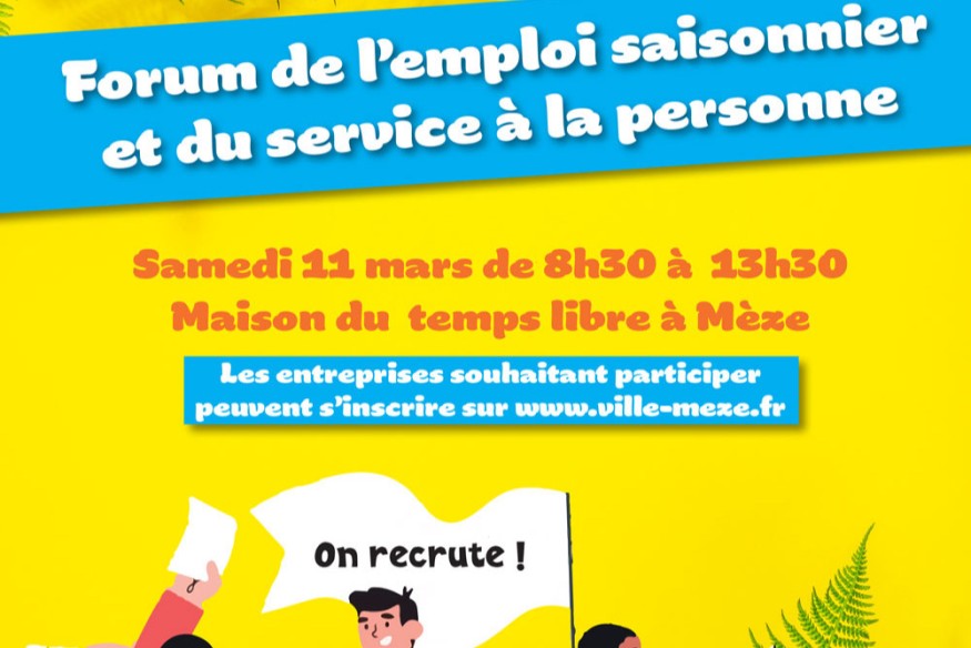 La Ville de Mèze propose une nouvelle édition du forum de l’emploi saisonnier et du service à la personne samedi 11 mars de 8h30 à 13 heures à la salle du Temps libre.