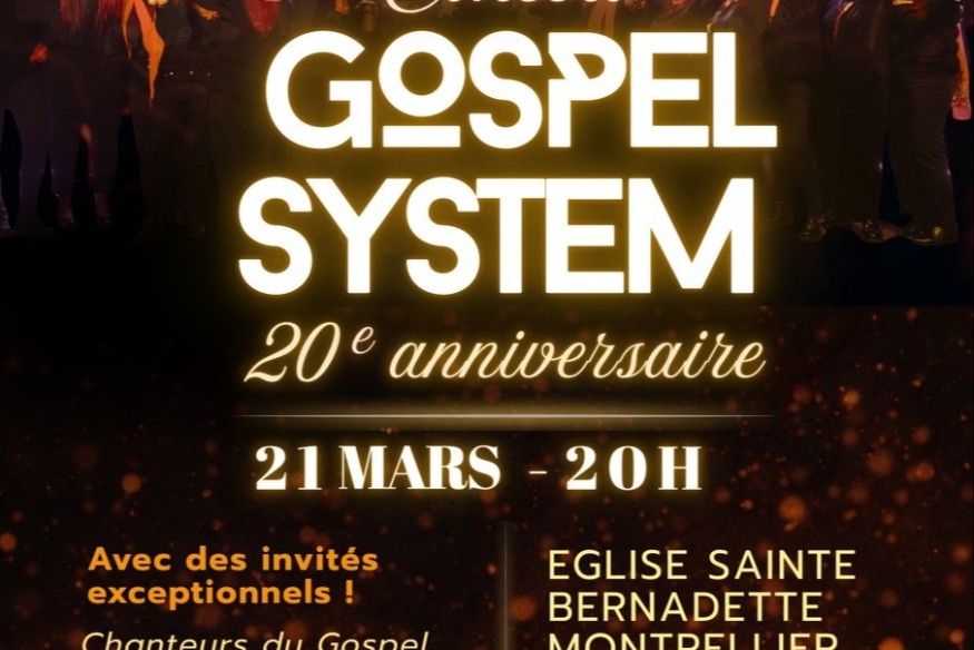 A Montpelleir Le samedi 21 mars 2026, la chorale montpelliéraine Gospel System célébrera ses 20 ans à l’Église Sainte-Bernadette… et autant dire qu’ils comptent marquer le coup