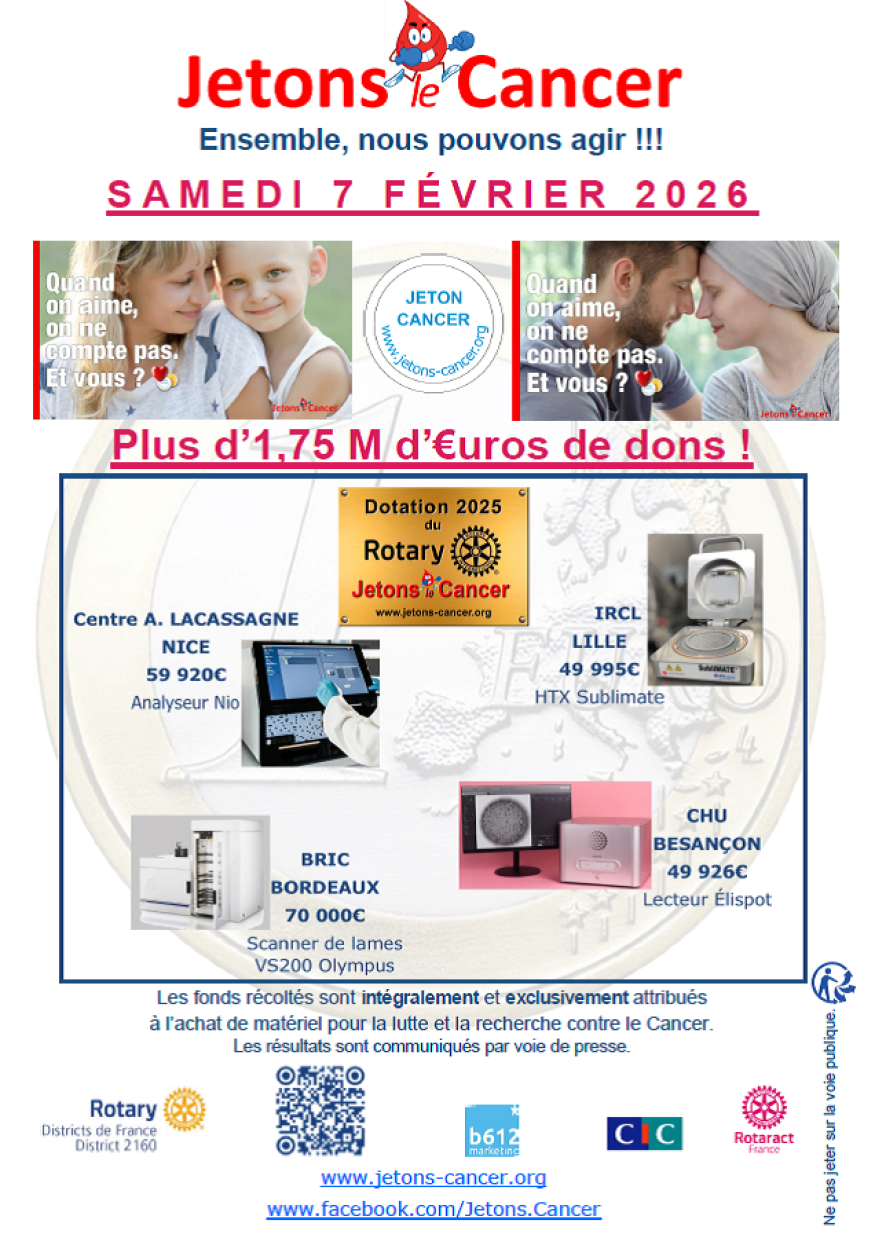 Le Rotary-Club d’Agde–Cap d’Agde lance, pour la 11? année consécutive, son opération solidaire « Jetons le cancer », une collecte de fonds destinée à soutenir la recherche contre le cancer.