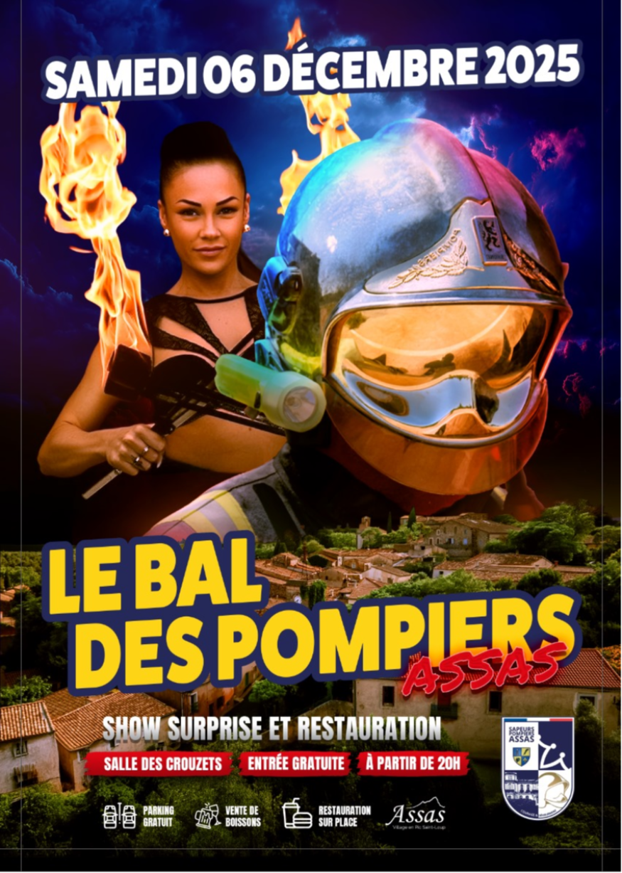 Les Sapeurs-Pompiers d’Assas vous donnent rendez-vous le samedi 6 décembre 2025 à partir de 20 heures, à la salle des Crouzets à Assas, pour une soirée festive et conviviale qui s’annonce inoubliable !
