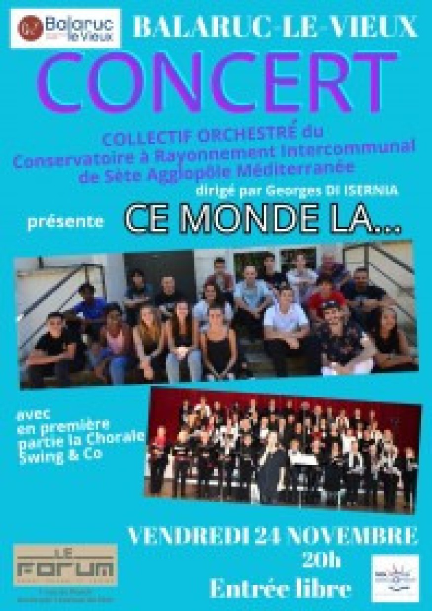 Le Vendredi 24 novembre, le Collectif Orchestré du Conservatoire à Rayonnement Intercommunal de Sète Agglopôle Méditerranée, dirigé par Georges DI ISERNIA présente "CE MONDE LA..."