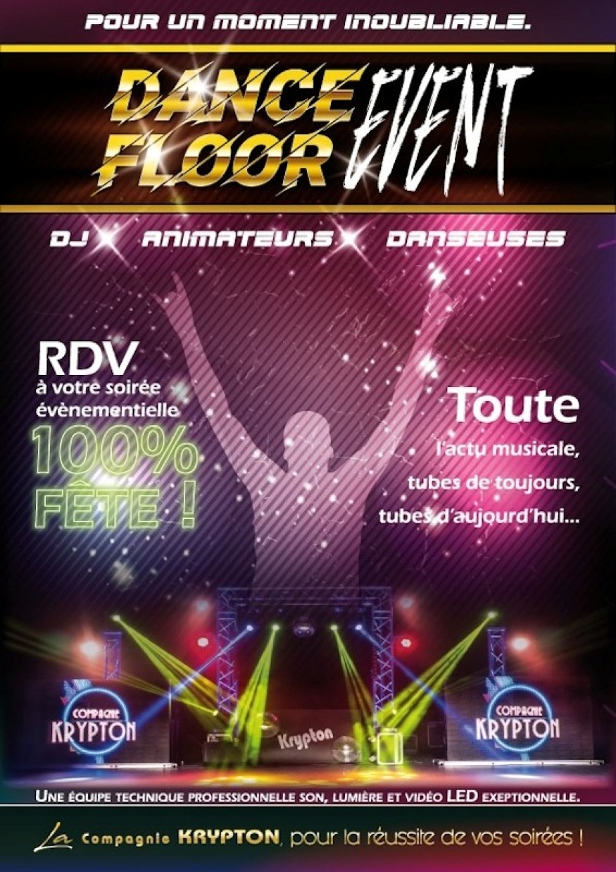 La Compagnie Krypton Music vous offre un spectacle pour danser sur les tubes d’hier et d’aujourd’hui avec Dj, animateurs et danseuses.