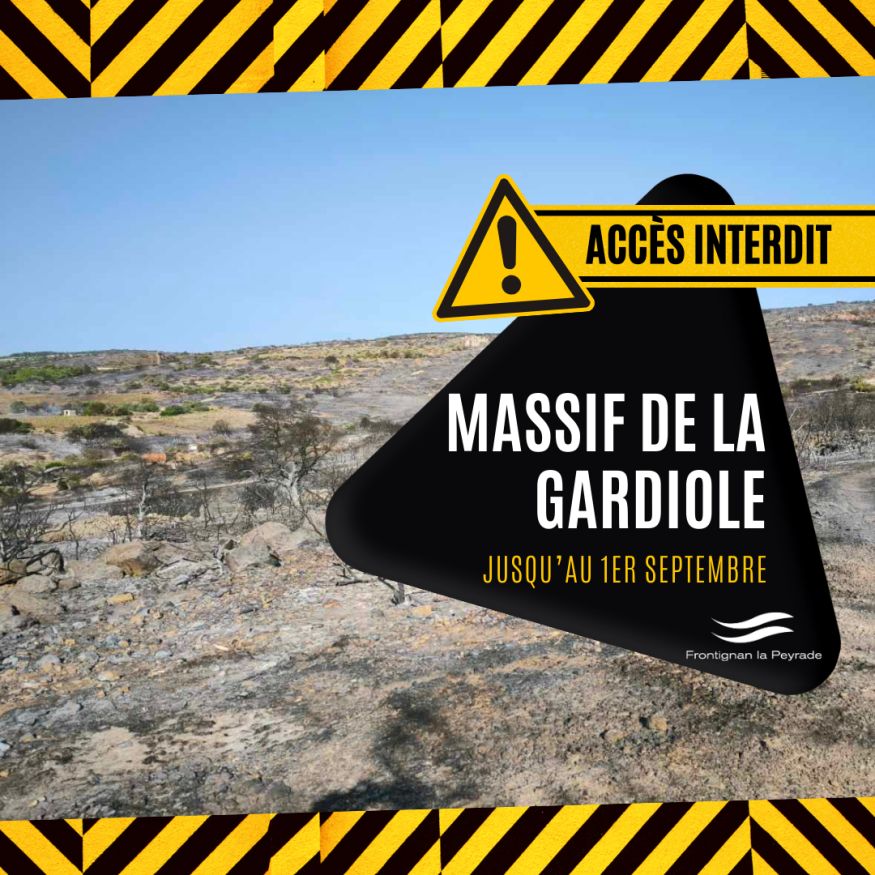 Afin d’assurer la mise en sécurité des biens, des personnes et des espaces naturels, la municipalité accompagnée des autres communes impactées, a demandé aux services de la Préfecture l’interdiction de l’accès à l’ensemble du Massif de la Gardiole jusqu’à la date du 1er septembre prochain.
