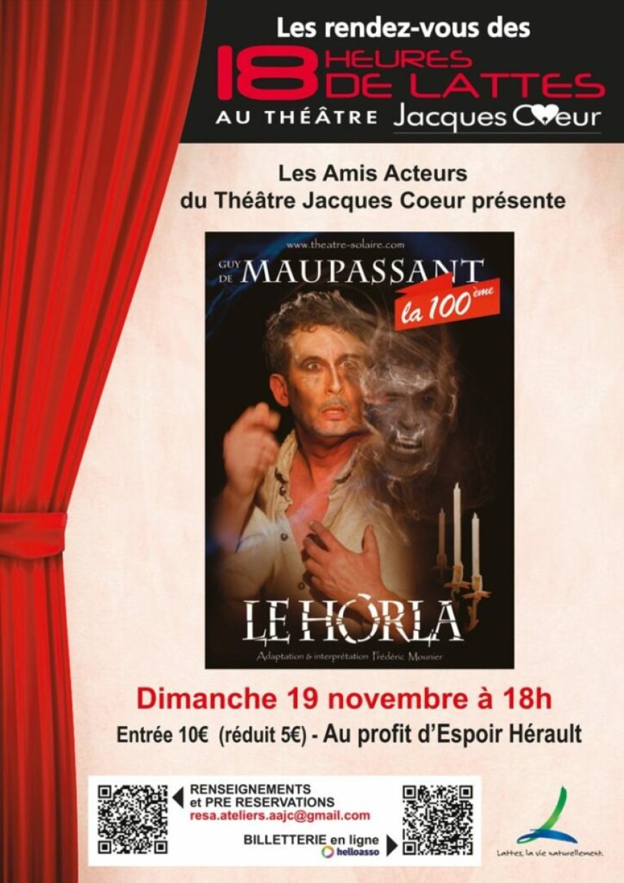Dimanche 19 novembre, dans le cadre des “18 heures de Lattes”, l’association les « Amis acteurs du théâtre Jacques-Cœur » présente Le Horla.