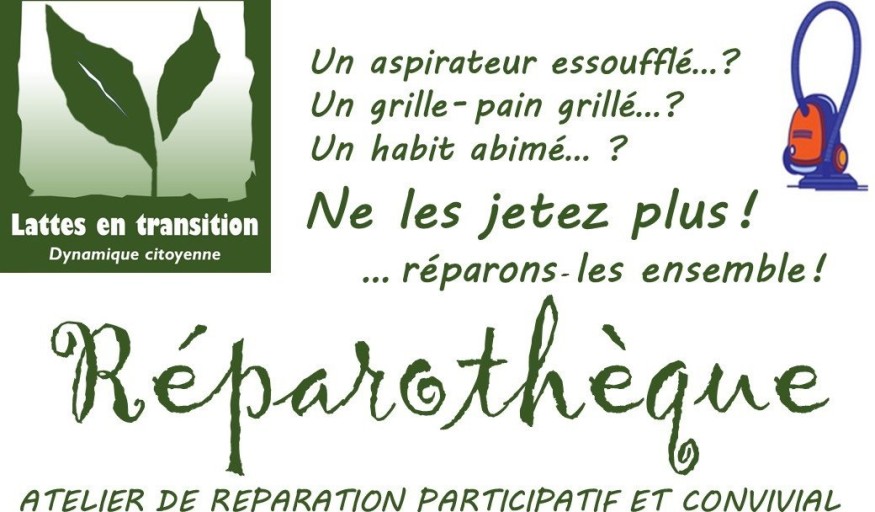 L’association "Lattes En Transition" organise un atelier de réparation participatif et convivial : la Réparothèque. Un aspirateur essoufflé ? Un grille-pain grillé ? Un habit abîmé ? Ne les jetez plus ! Réparons ensemble ! Des bricoleurs bénévoles mettent leur savoir-faire à disposition !