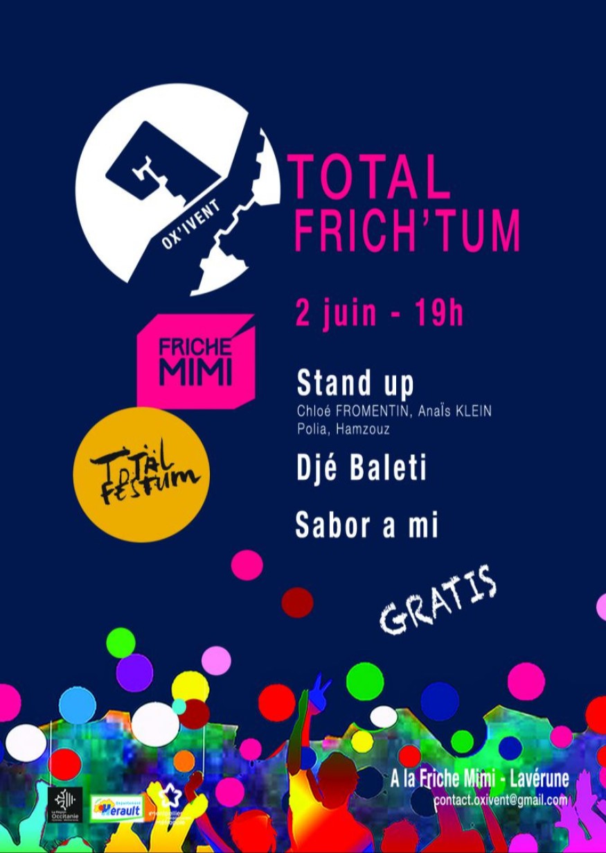 En collaboration avec la Friche Mimi et en partenariat avec la Région Occitanie, l’association Ox’ivent organise la deuxième édition du Total Frich’tum vendredi 2 juin à partir de 18 h 30 : une soirée familiale et festive gratuite, avec musiques, danses et rires.