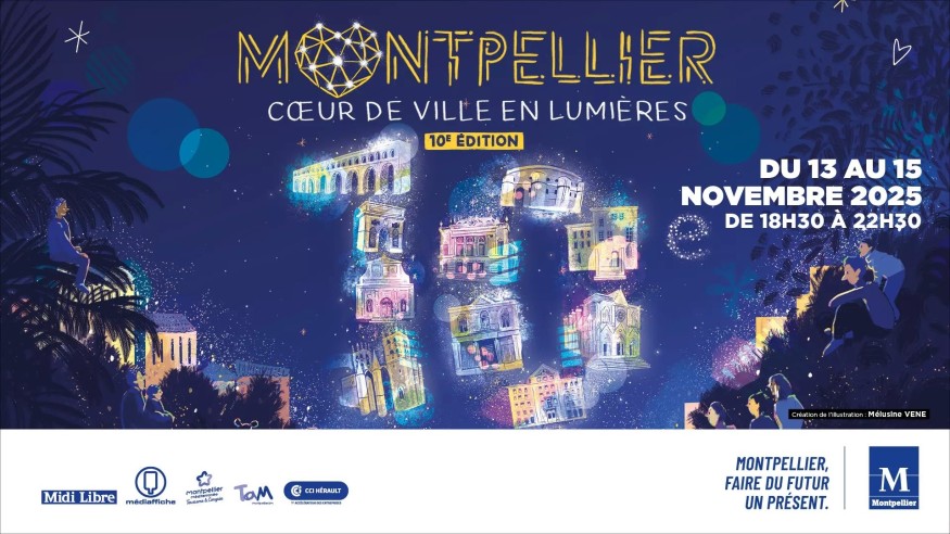 Pour sa 10 ème édition, Cœur de Ville en Lumières illumine à nouveau Montpellier avec un festival spectaculaire mêlant création visuelle, mapping architectural, jeux vidéo interactifs et performances son et lumière.