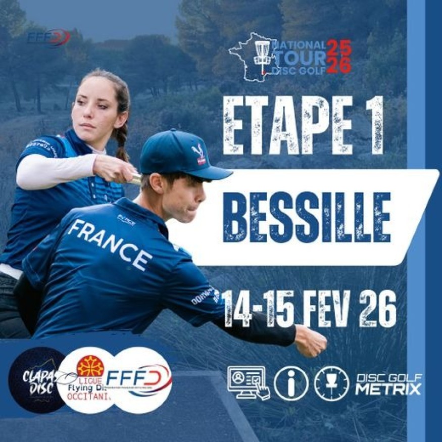 Samedi 14 et dimanche 15 février, de 8 h 30 à 18 h 30, la base départementale de Bessilles à Montagnac accueillera la première étape du National Tour de Disc Golf 2026, marquant le lancement officiel de la saison nationale.