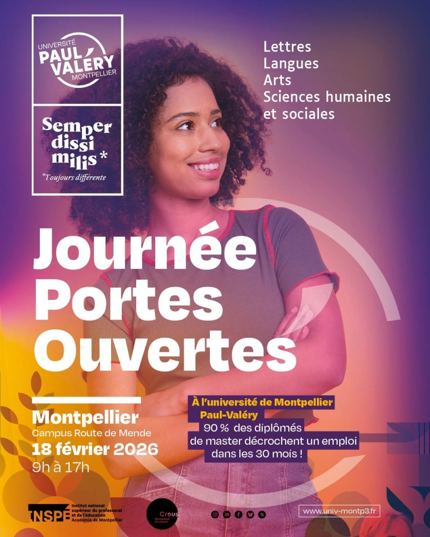 Mercredi 18 février l’Université Paul-Valéry vous ouvre ses portes de 9h à 17h pour découvrir :