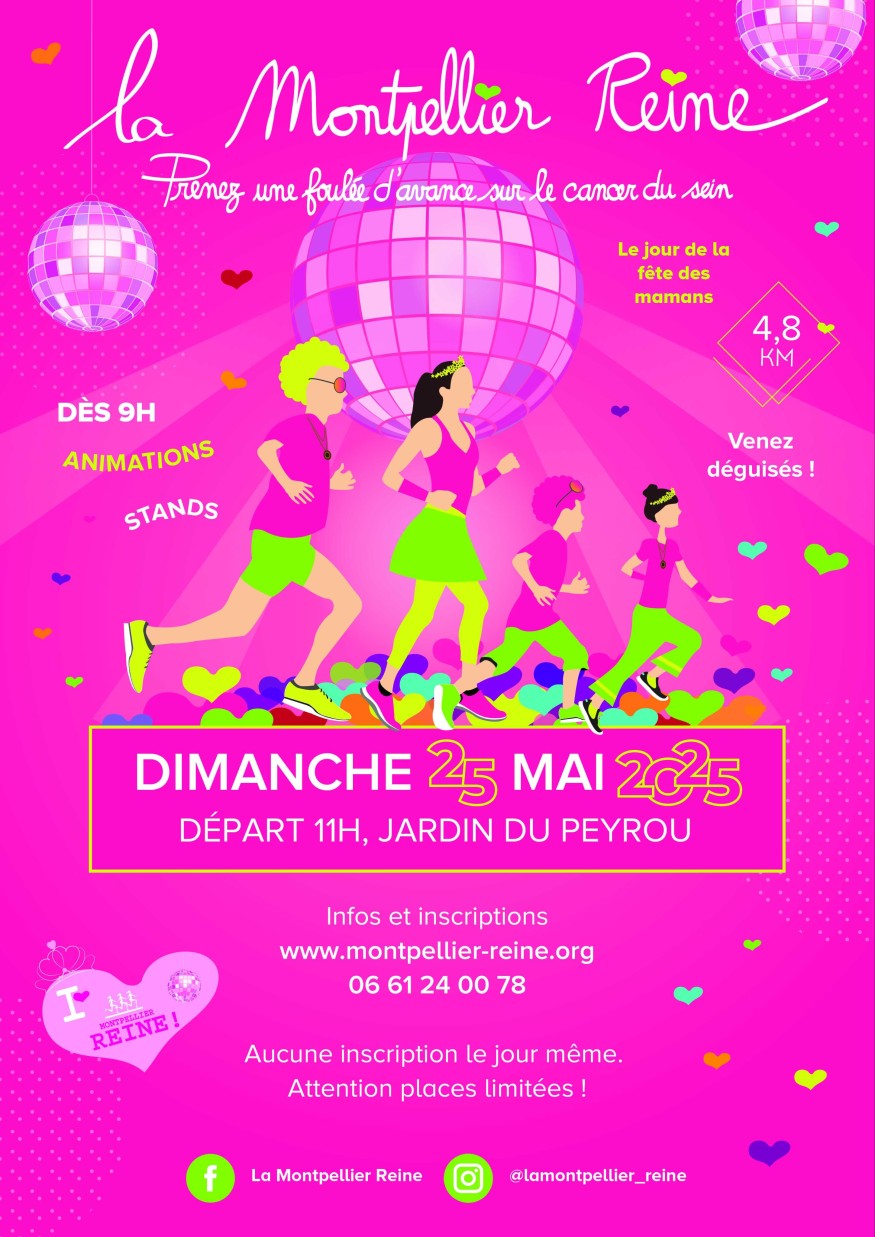 Comme chaque année, La Montpellier Reine a du cœur mobilise les rues de Montpellier pour sa traditionnelle course/marche caritative pour lutter contre le cancer du sein. Cette année il s’agira de la 16ème édition, une édition qui promet d’être exceptionnelle. Elle se déroulera, comme la tradition le souhaite, le jour de la fête des mères: le dimanche 25 mai 2025.