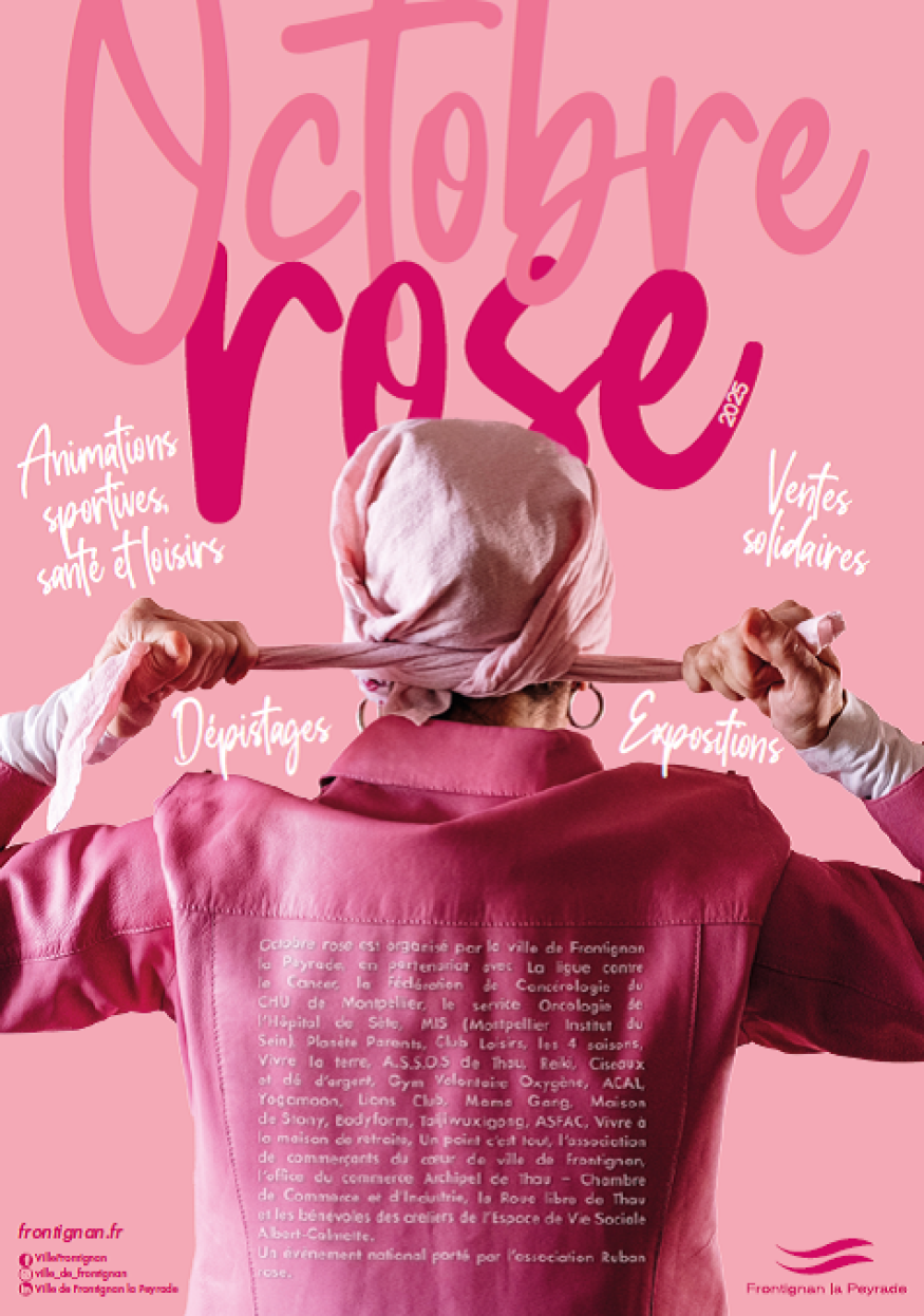 En octobre, l’Hôtel de Ville s’illuminera de rose pour marquer la 32e campagne mondiale de lutte contre le cancer du sein. Comme chaque année, la ville de Frontignan la Peyrade se mobilise avec de nombreux partenaires – associations locales, instituts de recherche, organismes de prévention et structures de suivi – pour proposer un mois riche en rendez-vous.