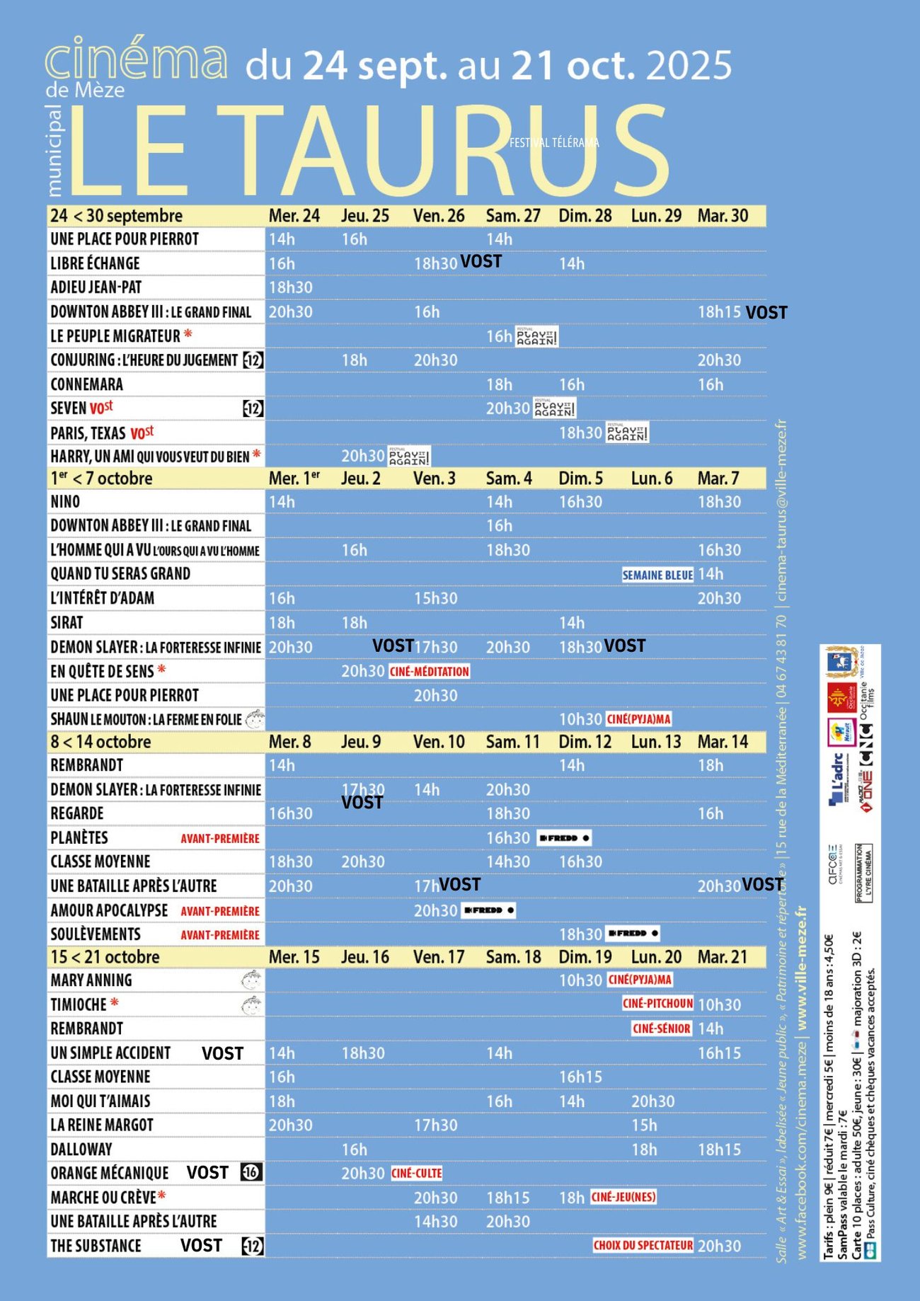 Découvrez le nouveau programme de votre Cinéma Municipal Le Taurus