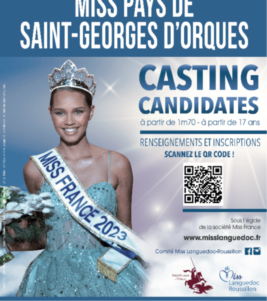 Les inscriptions sont ouvertes pour le concours Miss Pays de Saint-Georges-d’Orques, dont l’élection se tiendra le samedi 25 avril à 21h, au Centre Communal des Rencontres.