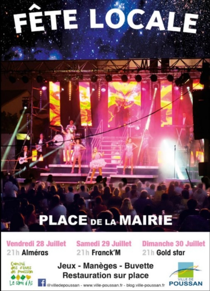 Du vendredi 28 au dimanche 30 juillet, place de la Mairie : week-end festif pour la fête locale de Poussan !