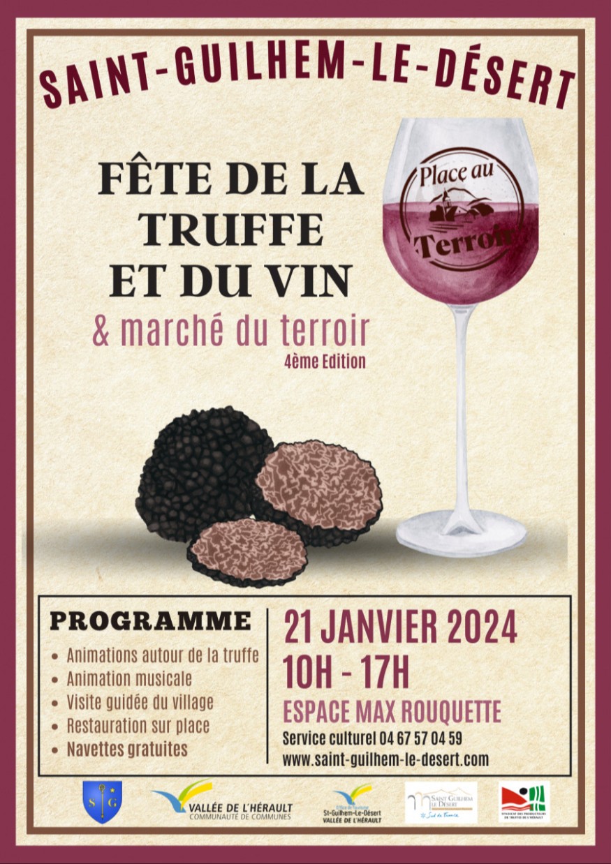 Ce dimanche 21 janvier, de 10h à 18h, partez à la découverte de l’or noir des garrigues et des vins de l’IGP Saint-Guilhem-le-Désert ! Au cœur de l’hiver, la cité médiévale de Saint-Guilhem-le-Désert vous propose une journée haute en saveurs et vous invite à célébrer les trésors d’un terroir d’exception avec les trufficulteurs de l’Hérault et les vignerons de l’IGP Saint-Guilhem-le-Désert. Au menu de cette quatrième édition, marché de la truffe, des produits du terroir et dégustation avec les vignerons de l’IGP Saint-Guilhem-le-Désert. De nombreuses animations seront proposées tout au long de la journée : démonstration de cavage (recherche de truffe avec chien), animations autour de la truffe et du vin, animation musicale , visite guidée de l’Abbaye de Gellone…