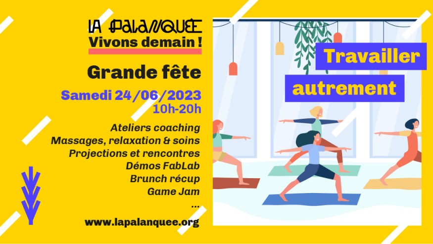 Samedi 24 juin - 10h-20h -Une journée pour tester le bien-être au travail à travers des ateliers, des massages, des temps de relaxation, s’interroger sur le rapport des jeunes face à l’emploi, pour collaborer et faire émerger l’intelligence collective autour d’une game jam, rencontrer des coachs professionnels, déjeuner et faire ensemble...
