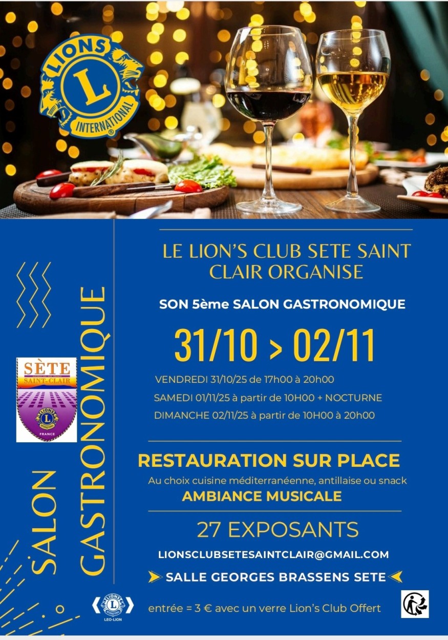 Le Lion’s Club Sète Saint-Clair organise la 5? édition de son Salon gastronomique, un rendez-vous caritatif placé sous le signe de la gourmandise et de la convivialité.