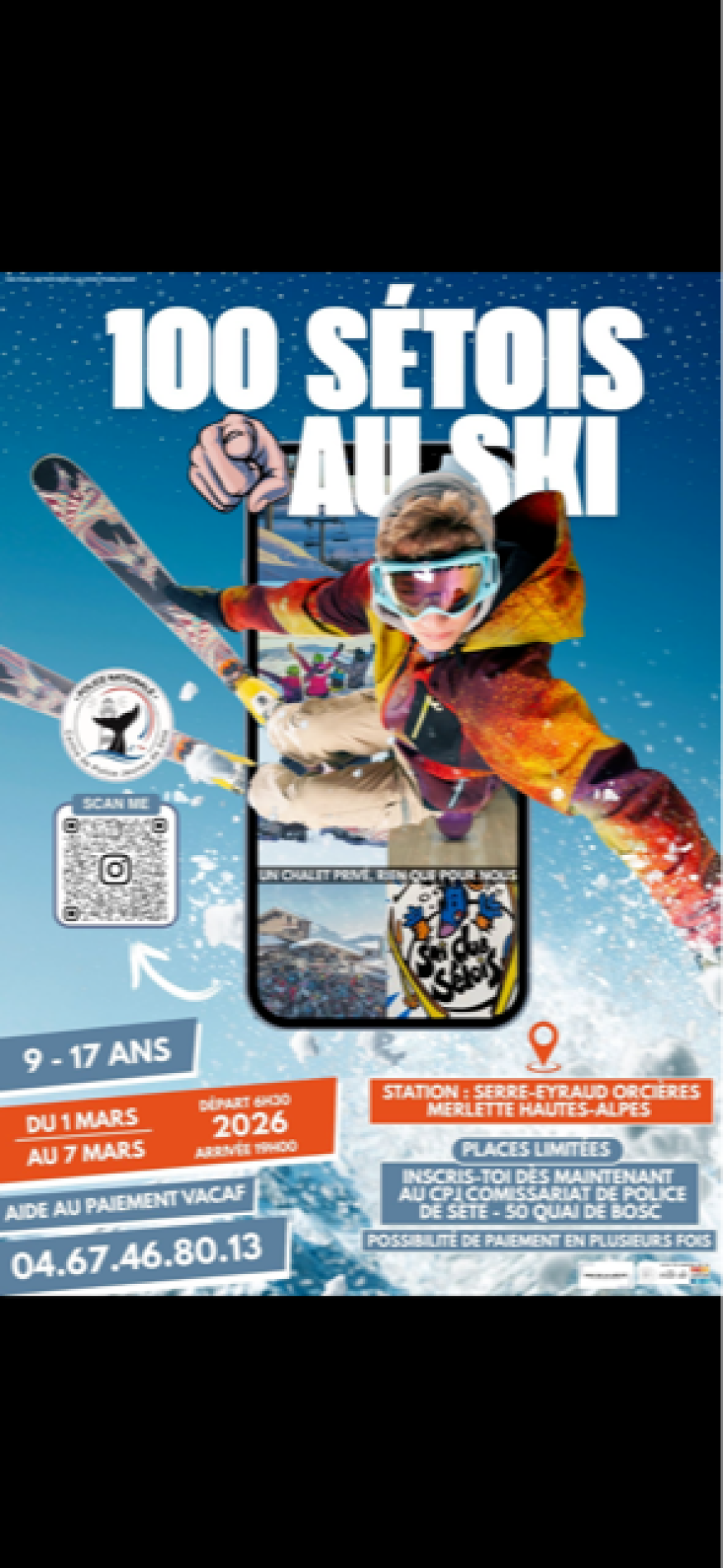 Le Centre de Loisirs des jeunes de la Police Nationale propose un séjour au ski pour les 9-17 ans du 1er au 7 mars à Orcières Merlette dans les Hautes Alpes.
