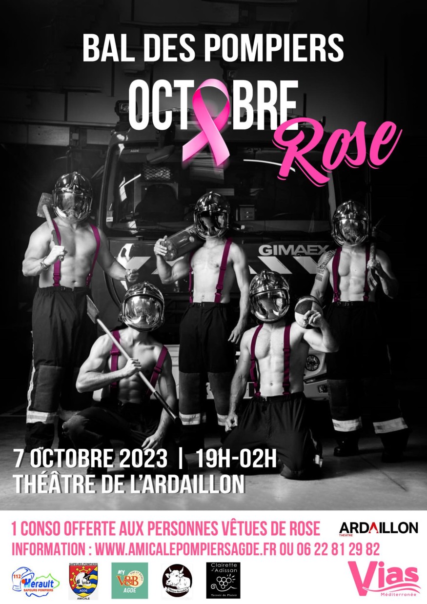 Les Sapeurs Pompiers d'Agde organisent leur traditionnel bal des pompiers le samedi 7 octobre de 19h à 2h au Théâtre de l'Ardaillon pour soutenir la lutte contre le cancer du sein.