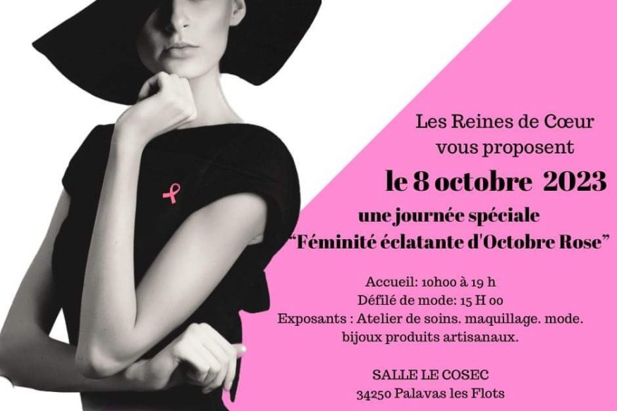 Dimanche 8 octobre Les Reines de Cœur vous proposent le 8 octobre 2023 une journée spéciale "Féminité éclatante d'Octobre Rose" de 10h à 19h Salle Le Cosec (avenue de l'Abbé Brocardi)
