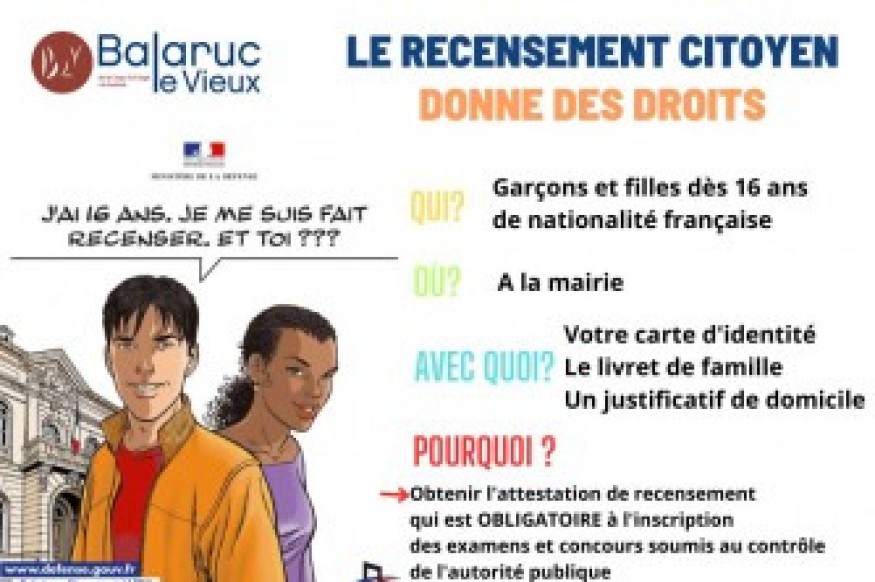 Vous êtes Français et vous allez bientôt avoir 16 ans ? Rendez-vous en Mairie pour faire le recensement citoyen OBLIGATOIRE.