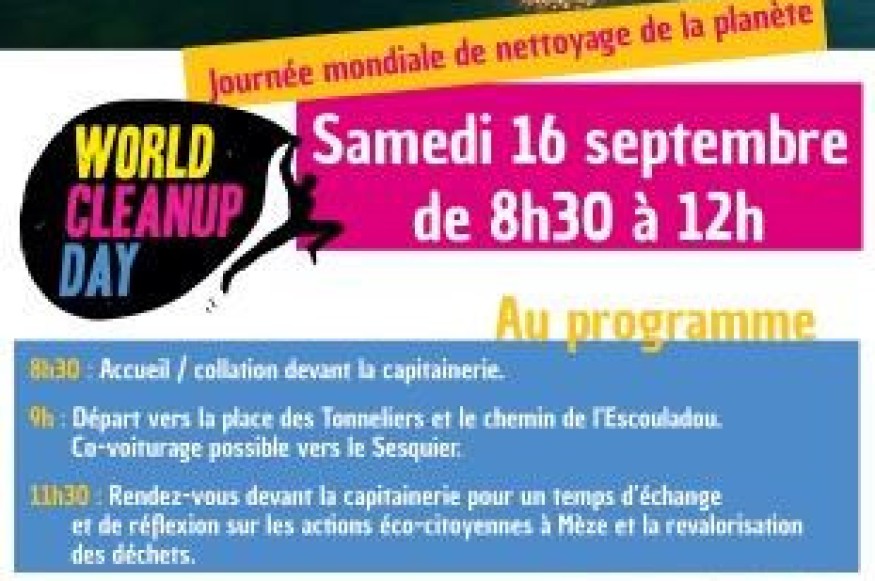 Samedi 16 septembre, Mèze participe au World Cleanup Day, le nettoyage mondial de la planète, à l’initiative de Marie-Hélène Pelain, adjointe à l’environnement et Numa Nicolas, conseiller municipal délégué au cadre de vie.