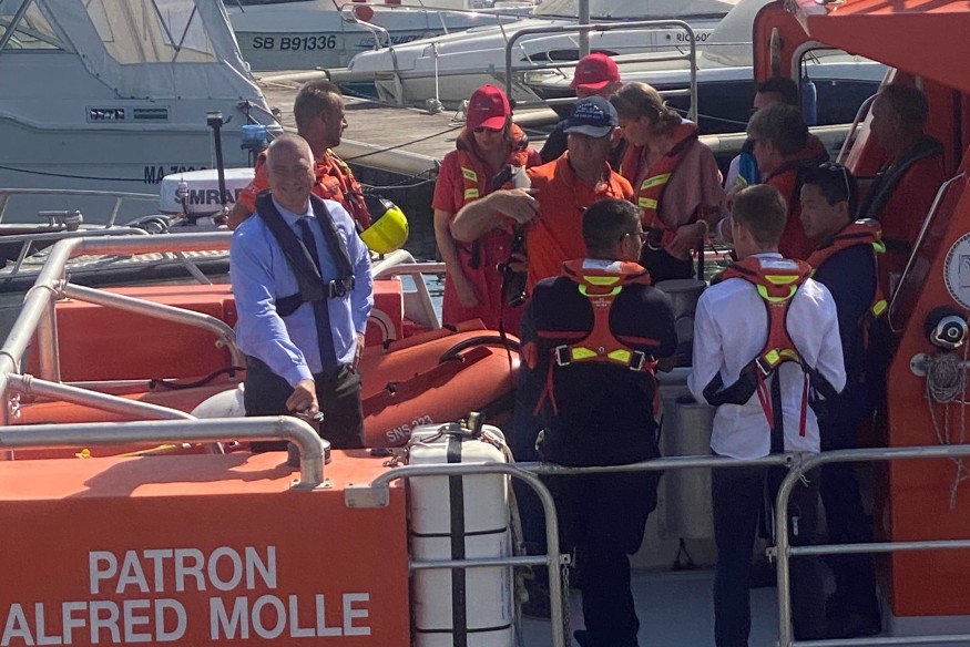 Hugues Moutouh , préfet de l'Hérault sur le bateau de sauvetage de la SNSM Société Nationale de Sauvetage en Mer.