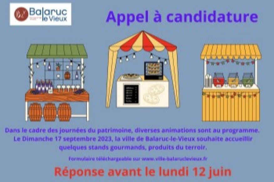 BALARUC LE VIEUX Journées du patrimoine - Appel à Candidature stands gourmands