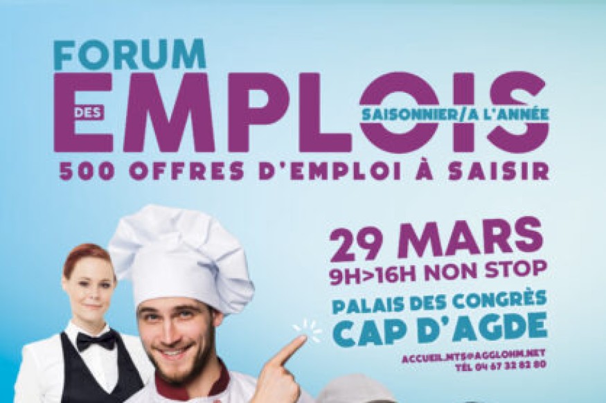 L’Agglo Hérault Méditerranée organise le forum des emplois le Mercredi 29 mars 2023, de 9h à 16h, au Palais des Congrès du Cap d’Agde.