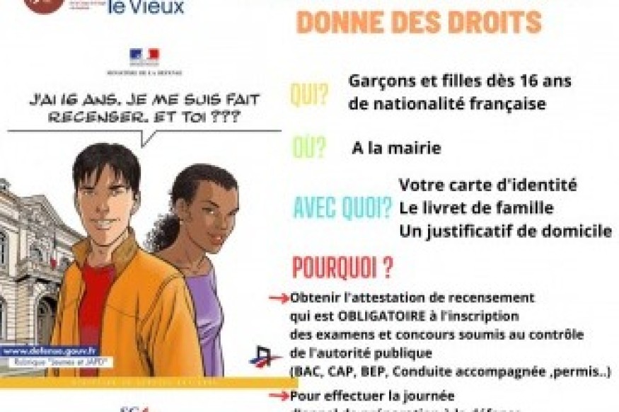 Vous êtes Français et vous allez bientôt avoir 16 ans ? Rendez-vous en Mairie pour faire le recensement citoyen OBLIGATOIRE.