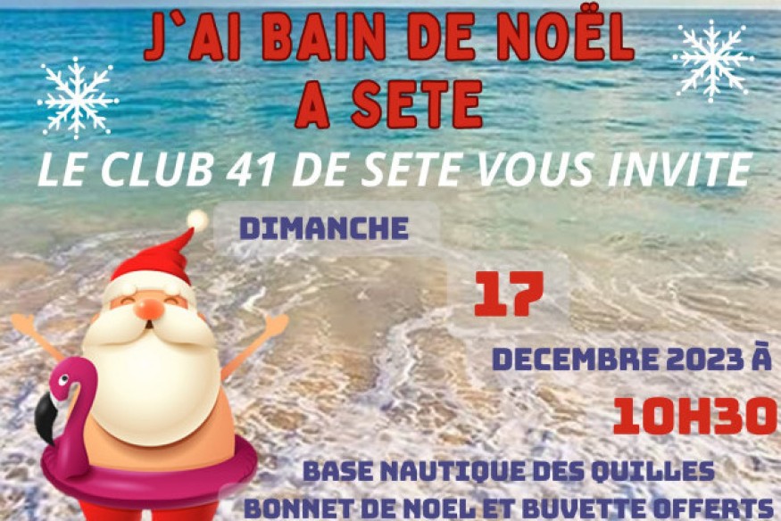 Le CLUB 41 de SETE, avec la participation de la Mairie de Sète et l’Association Sportive Sète Escapade vous convient au traditionnel Bain de Noël SETOIS qui fêtera sa 6ème année d’existence.