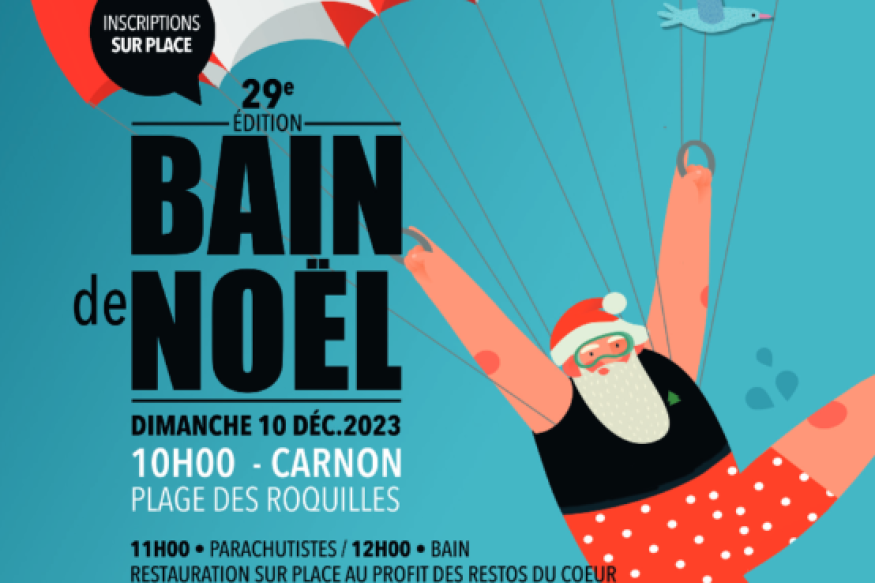 On vous attend nombreux pour la 29e édition DU BAIN DE NOËL DES RESTOS DU COEUR 34, dimanche 10 décembre à partir de 10h sur la plage des Roquilles à Carnon ouest.