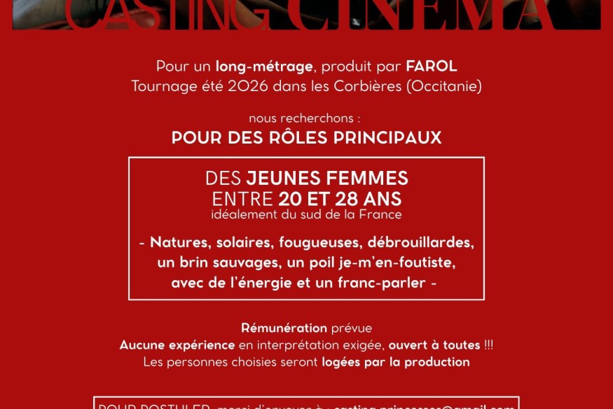 Dans le cadre du film « Princesses », premier long-métrage de Lili Cazals, produit par FAROL, une recherche de comédiennes est lancée sur le bassin de Thau.