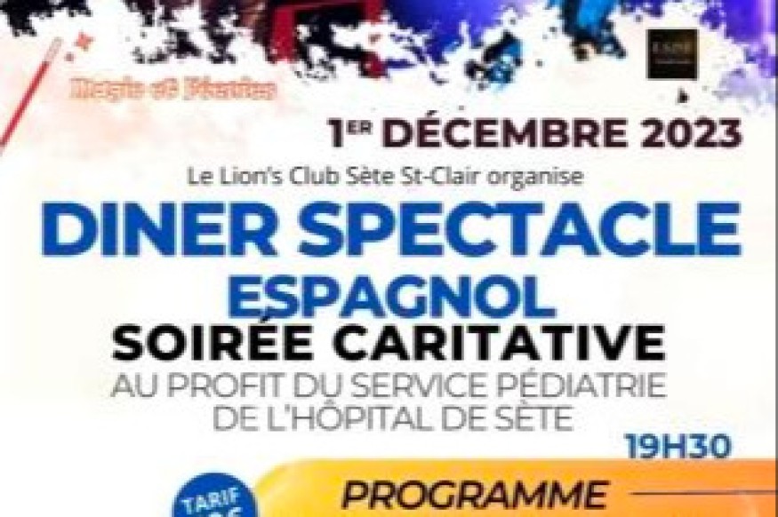 La soirée dîner spectacle est organisée le 1er décembre à Sète, salle Georges Brassens. C'est une soirée caritative dont les bénéfices iront au service pédiatrie de l'hôpital de Sete.