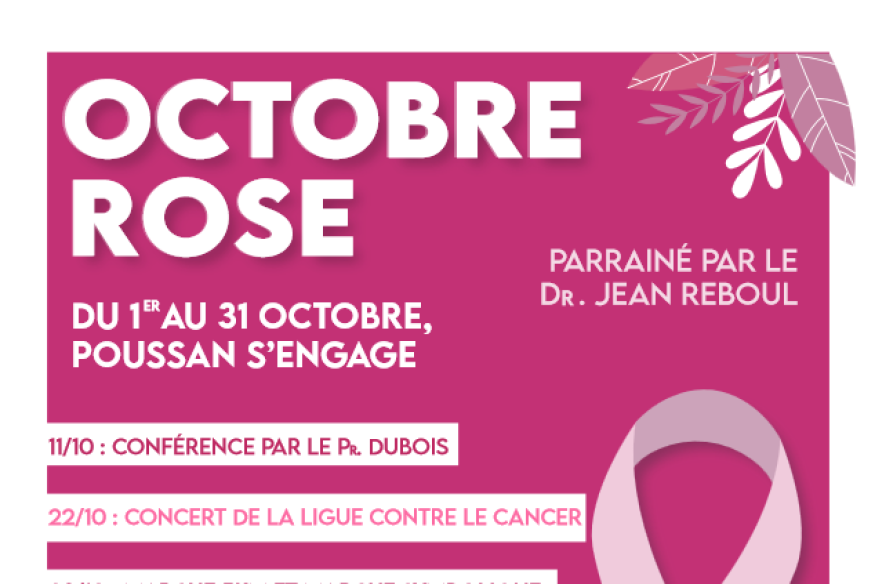 Le vendredi 27, une vente de rubans roses sera organisée par les Fées Clochettes sur le marché place de la Mairie. Le soir, à 20 h, une représentation théâtrale est proposée par la Compagnie Ombres et Couleurs à la salle de spectacle de la MJC. L’entrée est au chapeau et le spectacle est ouvert au public à partir de 12 ans.
