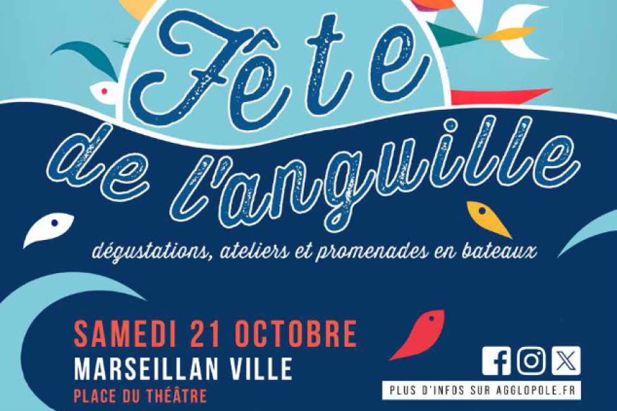 Cette manifestation conviviale se tient depuis 2015 à Marseillan. La 8ème édition se tiendra le samedi 21 octobre 2023 sur la Place du Théâtre et met à l’honneur une espèce typique de notre territoire et pourtant fort méconnue, l’anguille.