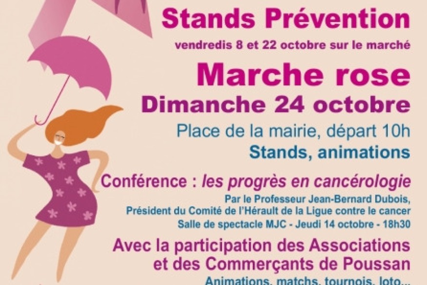 Du samedi 14 au samedi 21, la MJC ouvrira ses activités spécialement aux femmes. Autant d’occasions de s’informer, de se sensibiliser et de contribuer à la lutte contre le cancer lors de cette 30e campagne d’Octobre Rose à Poussan.