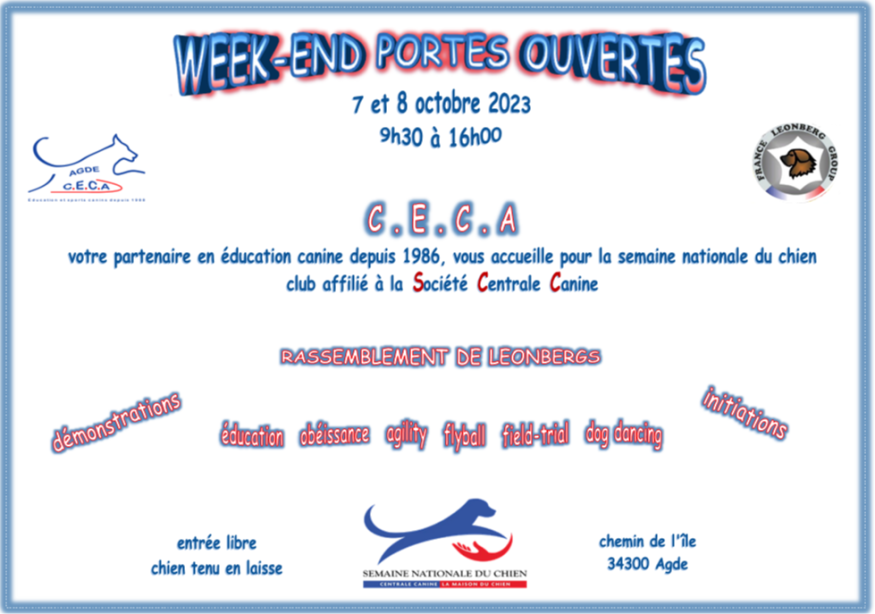 A l'occasion de la Semaine nationale du chien, le club d'éducation canine Agathois vous ouvre ses portes le temps d'un week-end avec de nombreuses démonstrations et initiations:
