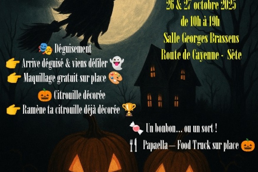 L’association 7 Artisanal, avec le soutien de la Ville de Sète, organise la première édition de la Fête de l’Automne – Spéciale Halloween, les 26 et 27 octobre 2025, de 10 h à 19 h, à la salle Georges-Brassens (route de Cayenne).