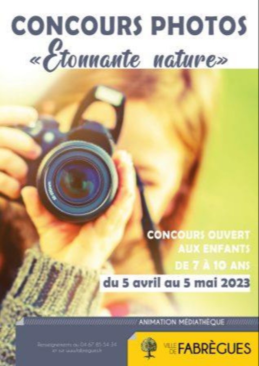 Le concours photos de la médiathèque est ouvert aux enfants de 7 à 10 ans. Il doivent prendre une photo qui soit étonnante, voire extraordinaire, cela peut-être un insecte, un animal, une fleur, une forme... Elle peut être en couleur ou noir et blanc, et sera sans filtre.