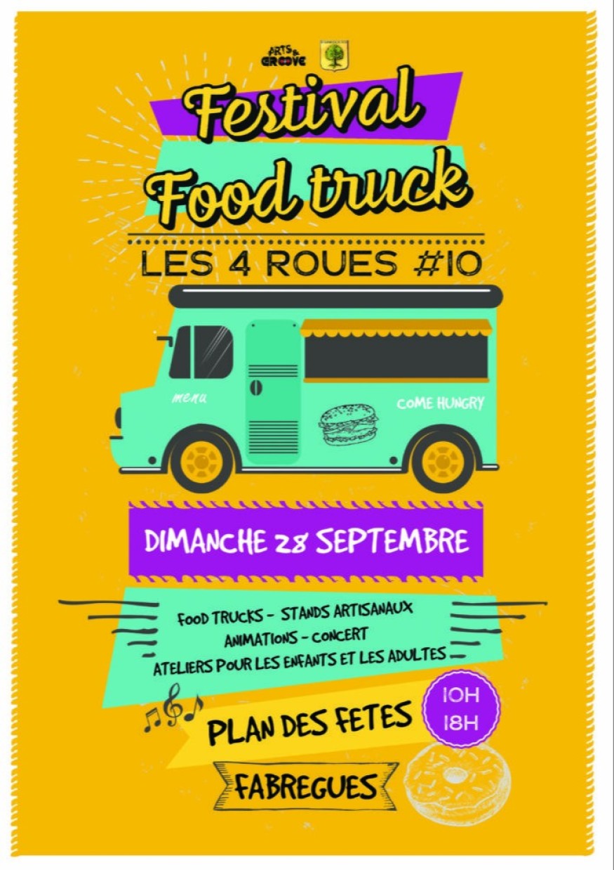 Arts & Groove présente la 10? édition du Festival Food Truck « Les 4 Roues » à Fabrègues (34)