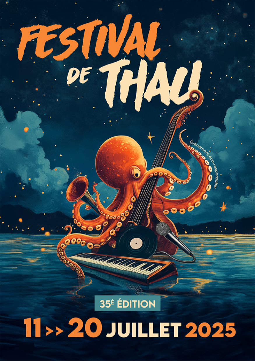La 35e édition du Festival de Thau se tiendra du 11 au 20 juillet 2025, à Loupian, Montbazin, Valmagne et au port de Mèze. Le festival invite artistes comme autres ami·e·s de longue date ou d'aujourd'hui (bénévoles, public...), pour célébrer ensemble toutes les musiques : les pieds dans l'eau, les cœurs à l'unisson, et les tentacules jusqu'aux étoiles.
