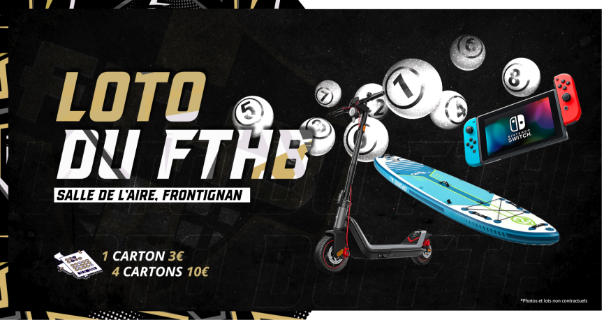 Le traditionnel loto du FTHB revient cette année encore et ce sera le dimanche 4 février à 14h30 à la salle de l’aire de Frontignan !