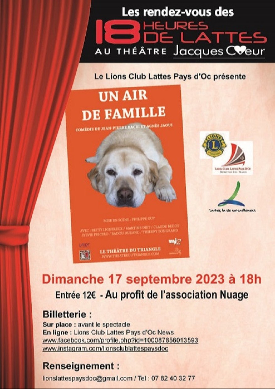 Le Lions Club Lattes Pays d’Oc vous présente « Un air de famille » à l’occasion de ce rendez-vous des 18 Heures de Lattes.