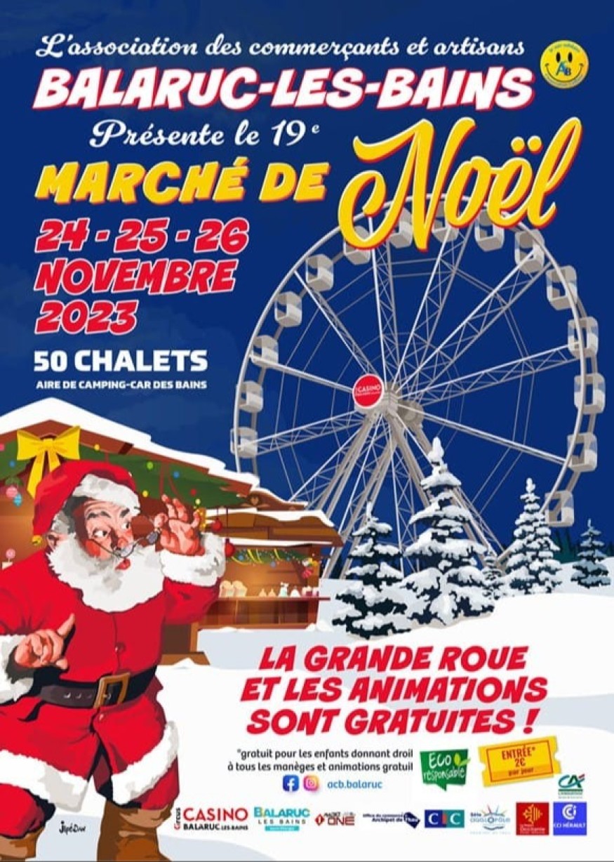 Les 24, 25 et 26 novembre 2023 c'est sur l'aire de camping de Balaruc-les-bains sur l'Avenue de Montpellier, que la magie de Noël s'installera.