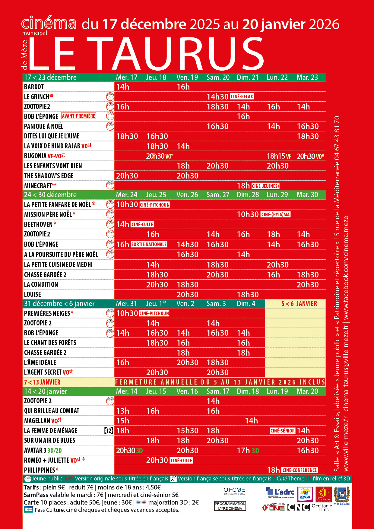 Pour cette nouvelle programmation, votre cinéma vous propose :