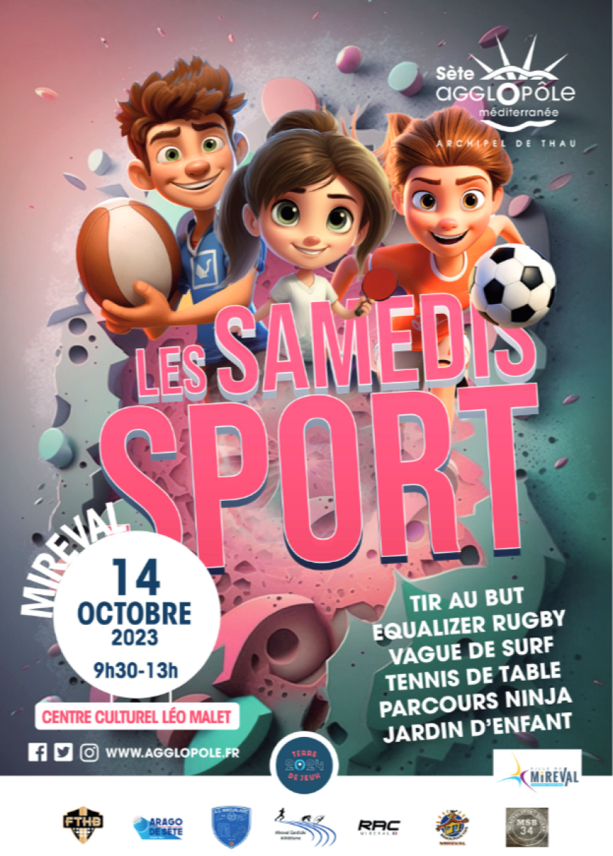 Après Vic-la-Gardiole en avril, Bouzigues en mai, Sète en juin, Marseillan en juillet, Mèze en août, Poussan en septembre, c’est au tour de Mireval d’accueillir le prochain « samedi du sport » le 14 octobre.